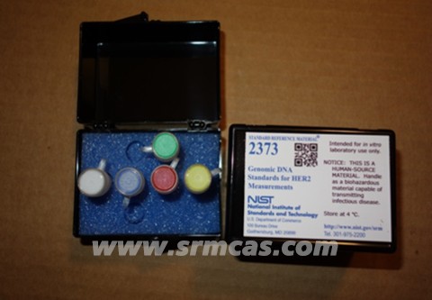 NIST 標準參考材料 SRM 2373 旨在改進 DNA 樣品中 HER2 基因擴增的測量。 SRM 2373 由從具有不同 HER2 基因擴增量的五種乳腺癌細胞系中提取的基因組 DNA 組成。這五種成分來自人類細胞系 SK-BR-3、MDA-MB-231、MDA-MB-361、MDA-MB-453 和 BT-474。