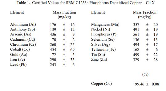產品名稱:標準參考物質 NIST SRM C1253a - 磷還原銅-銅X