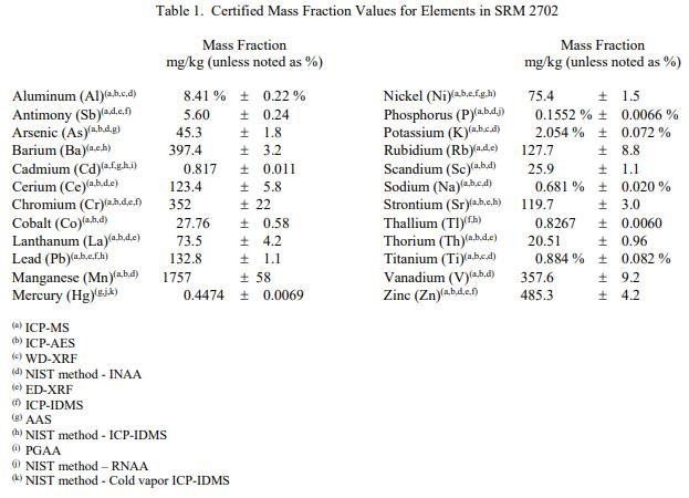 產(chǎn)品名稱:標(biāo)準(zhǔn)參考物質(zhì) NIST SRM 2702 - 海洋沉積物中的無機(jī)物
