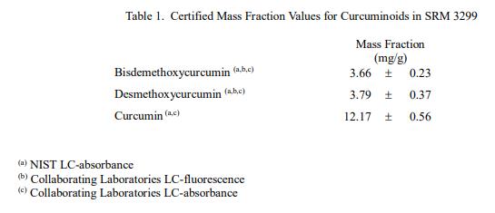 NIST SRM 3299 姜黃粉根莖(標(biāo)準(zhǔn)品) 主要用于驗證測定姜黃 (Curcuma longa L.) 根莖和類似基質(zhì)中姜黃素和元素的分析方法。在為內(nèi)部控制材料賦值時,SRM 3299 還可用于質(zhì)量保證。